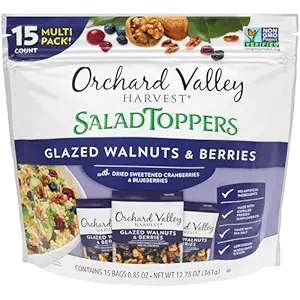 Add crunch and flavor with the Orchard Valley Harvest Glazed Walnuts and Berries Salad Toppers, a ready-made blend of roasted seeds, dried cranberries, and nuts that pairs perfectly with homegrown greens.
