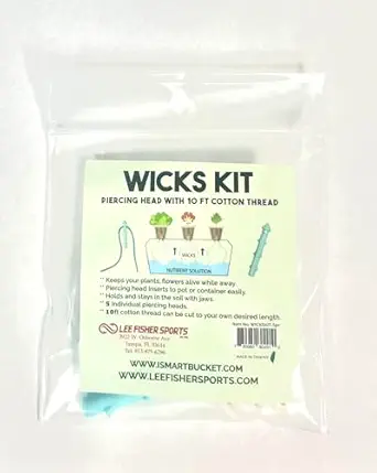 The Wicks KIT, Cotton Thread 10 ft with 5 Piercing Heads is ideal for passive hydroponic systems like the Wick System. It includes absorbent cotton thread and piercing heads, providing reliable moisture delivery to plant roots without electricity.